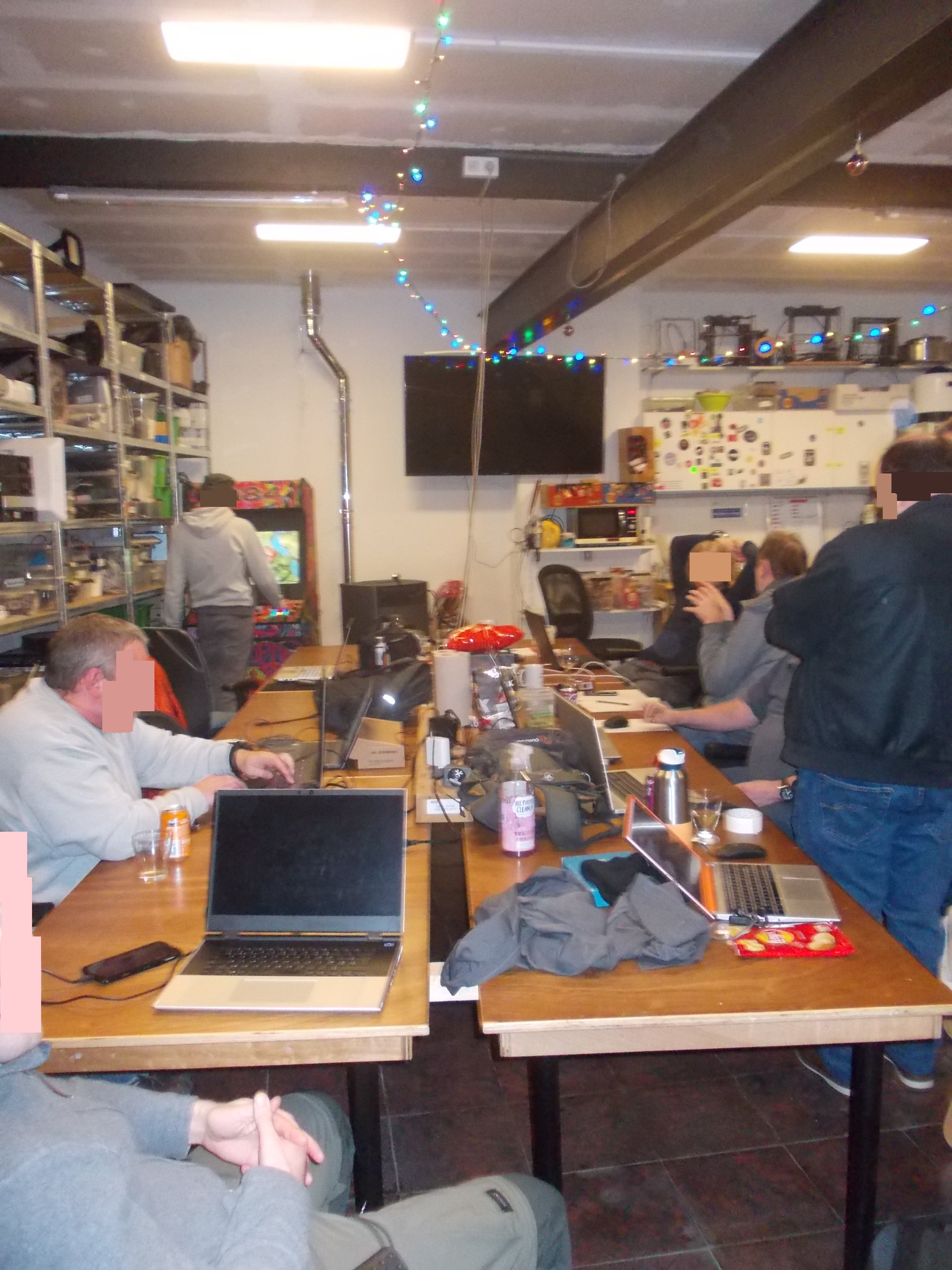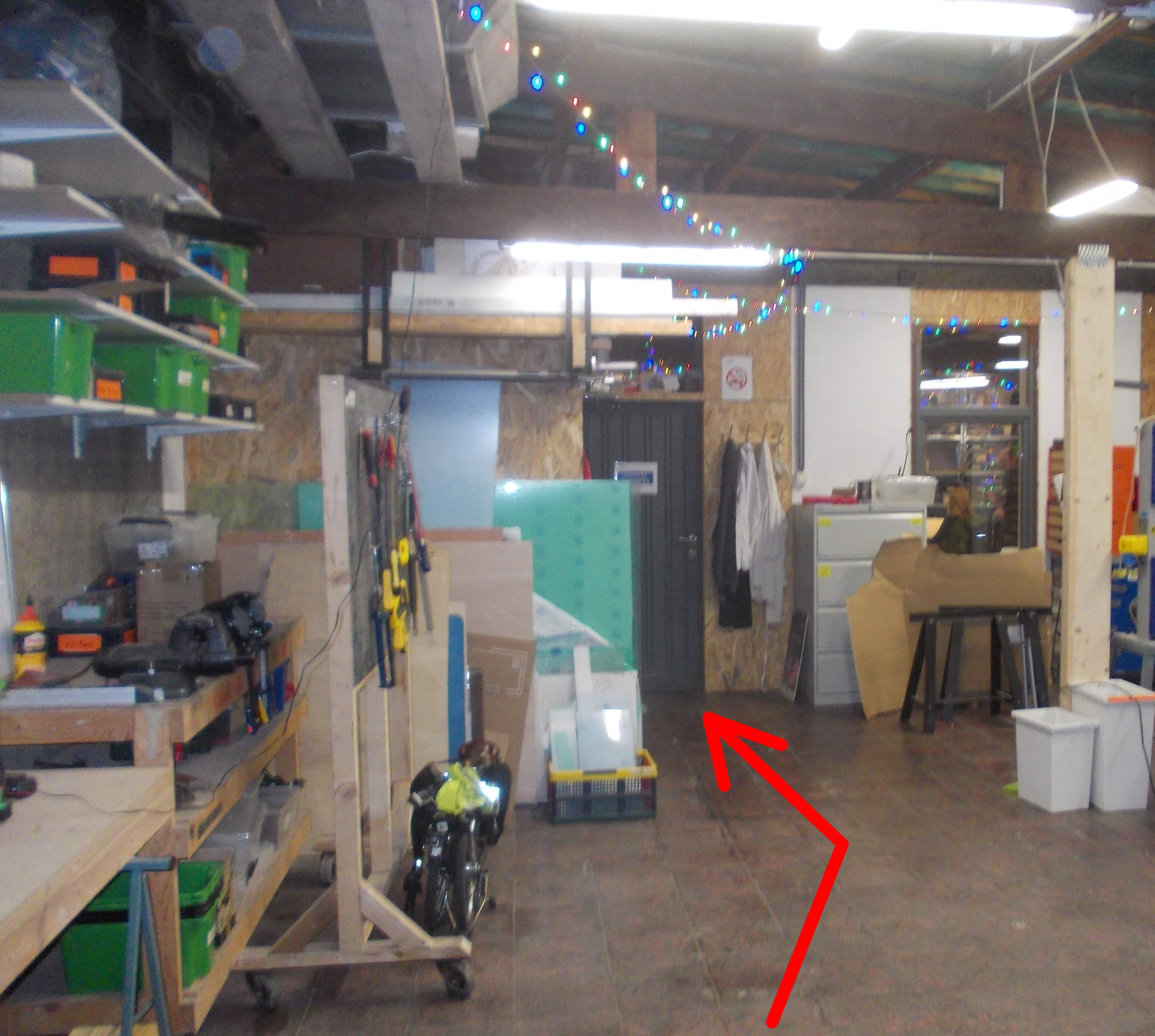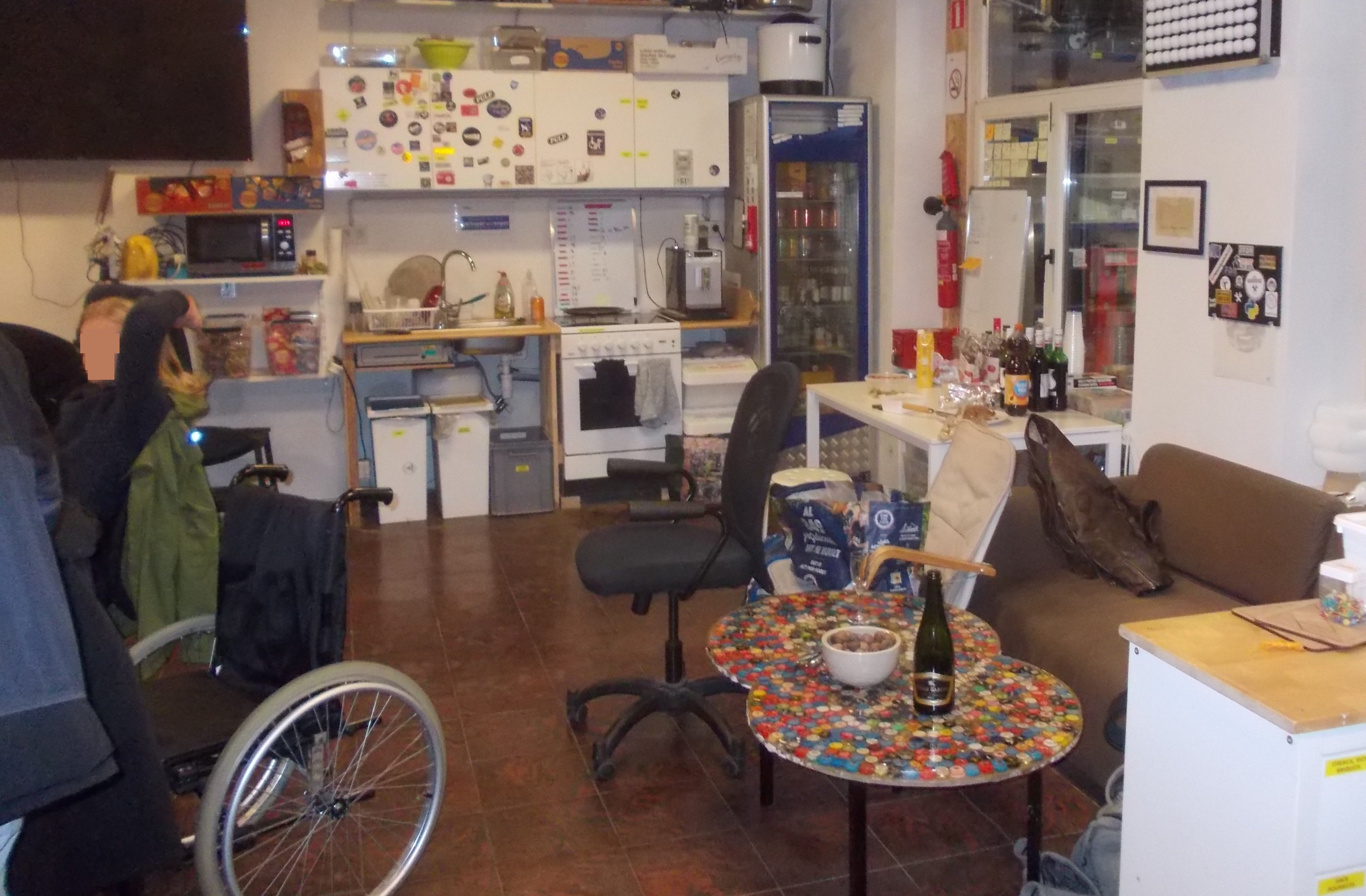 Liège Hackerspacerue de la Loi 16bis Le Hackerspace se définit comme un tiers-lieu de rencontre et n'est pas un repère de "pirates" mais plutôt de bidouilleurs (comme expliqué ici ou -par un pionnier- dans cette vidéo). Cette page "FAQ" sur leur site résume le fonctionnement du lieu. Accès : sonnez simplement à la porte cochère du n°16bis (sonnette sur la gauche) et patientez jusqu'à ce qu'elle se déverrouille ou vous soit ouverte. Vous devez alors traverser un couloir puis une première pièce (atelier) pour arriver à la porte de la grande salle :